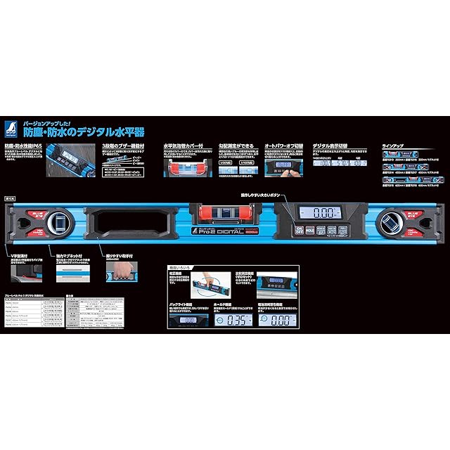 デジタル表示最小単位:角度0.05°、勾配0.1%、立ち上がり1mm/m