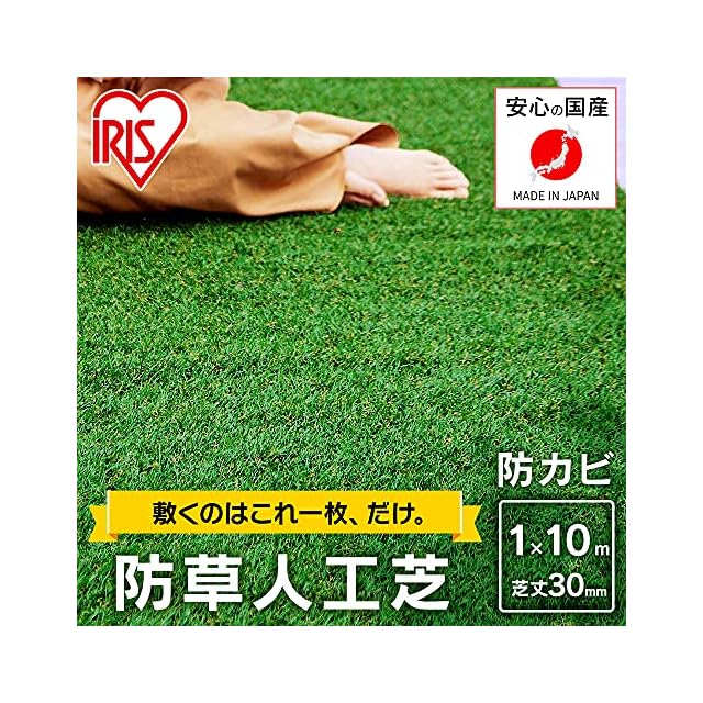 【防草シート不要】アイリスオーヤマ 国産 防草人工芝 1m×10m 防草シート一体型 芝丈3cm U字針24本付き 簡単にカット可能 簡単設置 日本製 雑草メンテナス不要 RP-30110