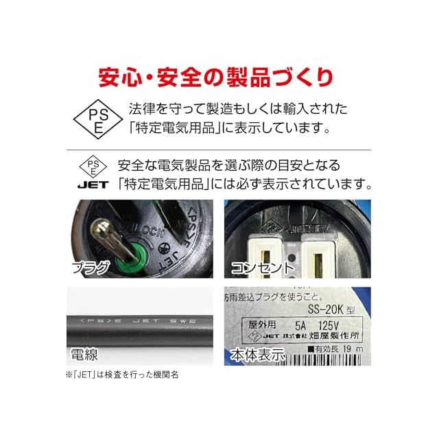 電線仕様(種別・太さ×心数):VCT 1.25㎟×3心、製品定格:125V・5A