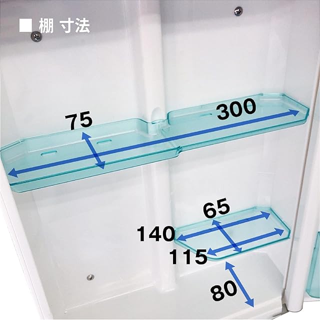 本体材質:耐衝撃性スチロール樹脂 鏡:ガラス トレイ・扉ポケット:AS樹脂