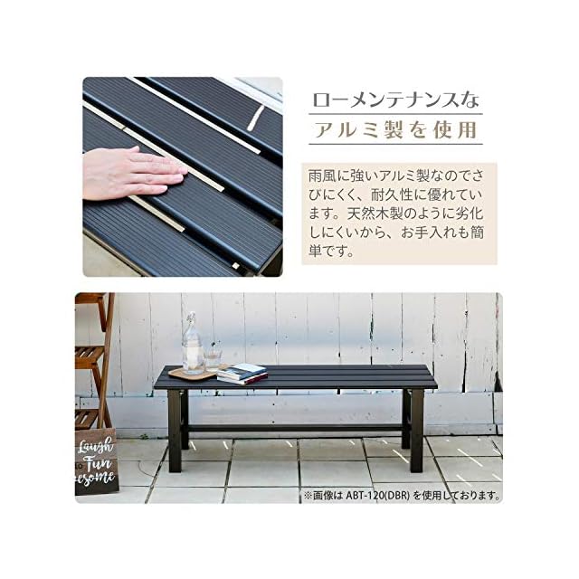 【特徴1】雨風に強いアルミ製なのでさびにくく耐久性に優れています。天然木製のように劣化しにくいので、お手入れも簡単です。