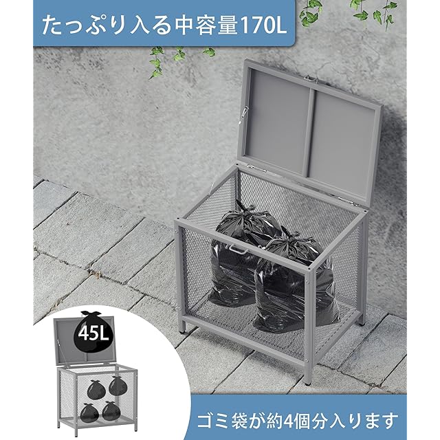 ゴミ箱 ゴミステーション ふた付き 屋外 大型 ダストボックス 分別 蓋付き 大きめ 外 大容量 業務用 大型自治会 カラスよけ 外置き 外用 室外 たくさん カラス 対策 サビにくい シンプル ゴミ置き場 屋外ストッカー 屋外用ゴミ箱 ゴミストッカー 置き型 設置型 屋外用 高強度 (170L)