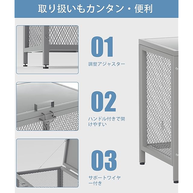 【カラスや野良猫から守る】蓋ができるのでカラスなどに荒らされる心配やストレスがなくなります。ゴミ袋をボックスに入れて、見た目もすっきりします。