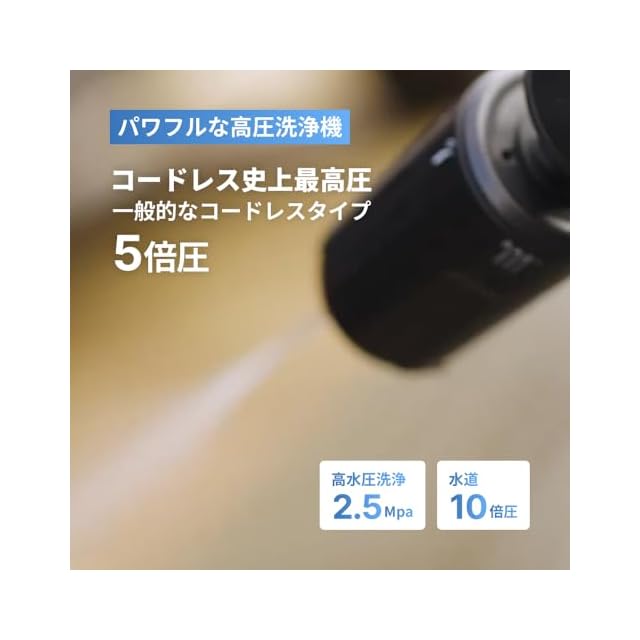超軽量×パワフル高圧洗浄機 車や家の外回りの汚れを落とすのにふさわしい最大水圧3.5MPaを実現しました。
