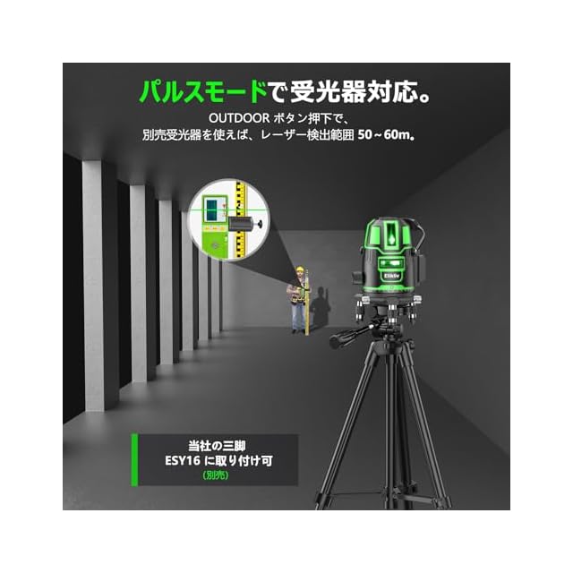 ✅【受光器対応、室内室外兼用】レーザー水平器 B5 は、直射日光が当たる場所や照明が明るい場所などでは、ラインを視認することが難しいことがあります。そういった環境で使用する場合は、必ず受光器も購入するようにしましょう。弊社の墨出し器にはパルスモードが搭載されています。受光器(別売り)と組み合わせて使用する場合は、レーザー検出範囲は 50~60M まで到達し、室外でも作業できます。丈夫な収納ケースが付き、持ち運びが便利で、作業現場に行く時に利用できます。