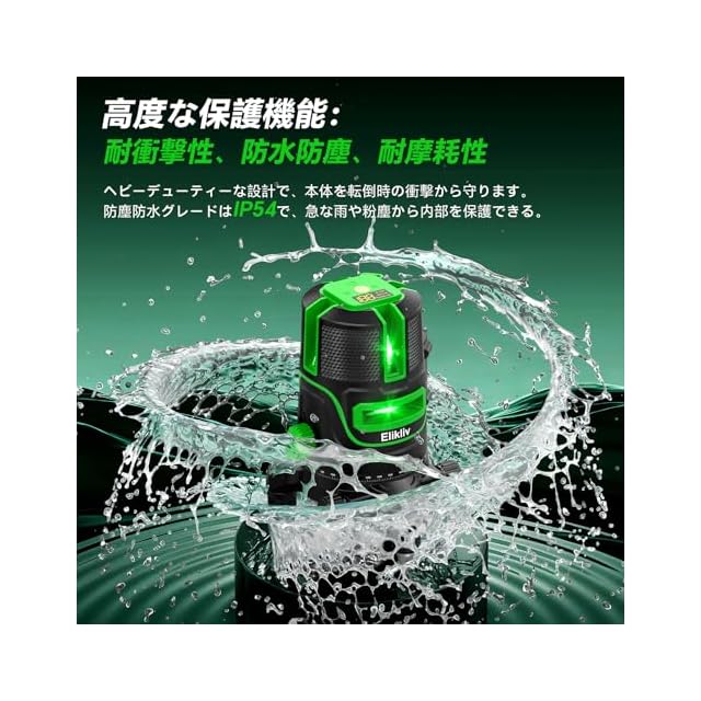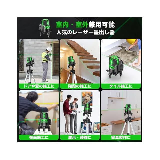 ✅ 【2025最新改良した高精度の5ラインレーザー墨出し器R5 Pro】改良点❶:他の墨出し器より本体に電量LCDディスプレーが搭載し、作業中バッテリーの残量が一目瞭然。改良点➋:エレベーター三脚付属し、レーザー水平器と一緒にケースを収納でき、持ち運びに大変に便利です。改良点❸:垂直ライン4本、水平ライン1本、5ドット。赤色よりも視覚的に見やすいとされるグリーン レーザーを採用していて、明るくクリアなグリーンレーザービームを照射し、簡単に正確な結果を得ることができます。レーザー基準:クラス2、1MW以下で、家庭やオフィスで使用できるように設計されています。改良点❹:レーザーの明るさが無段階調整できます。
