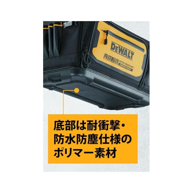 底部は耐衝撃・防水防塵仕様のポリマー素材、ターポリン素材の溶接防水防塵(IP54)ポケット搭載