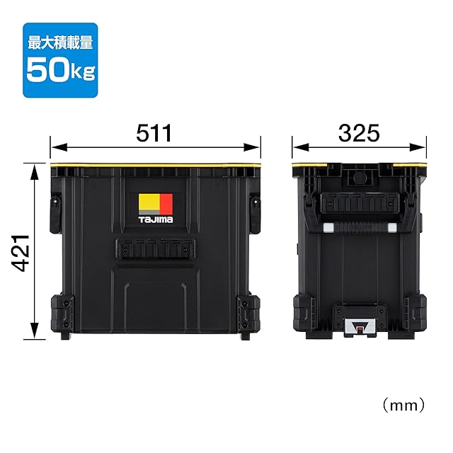 タジマ セフシステム セフツールバスケットハンドル付 TB-TBSKH 大容量仕様(最大積載量50kg) 内・外側にセフホルダー機能36個 重ねて置くだけで連結する荷崩れ防止仕様 セフ台車との連結も可能 片手・両手持ちができる2wayハンドル | つむぎ屋