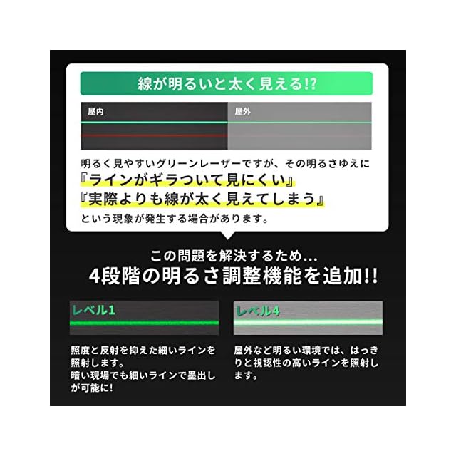✅【シリーズ累計 96,000台突破!】VOICE レーザー墨出し器から、デザインと機能をアップグレードしたモデルが登場。マットブラックを基調としたスタイリッシュなデザイン。専用アプリを使うことで、手元のスマートフォンから「照射ライン」や「ラインの明るさ」の調整が可能に。