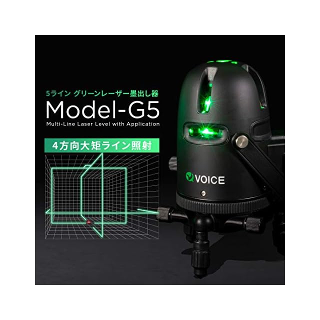 VOICE レーザー墨出し器 5ライン グリーンレーザー Model-G5 レーザー 4方向大矩ライン照射モデル アプリからの遠隔操作 タッチスイッチ