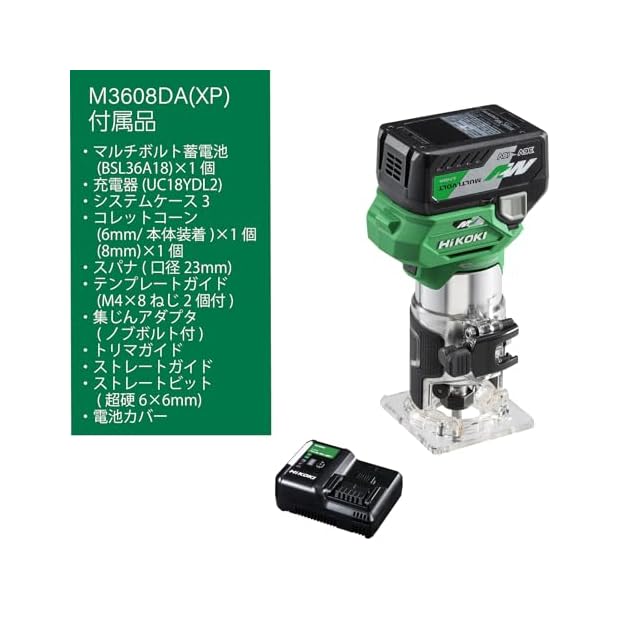 HiKOKI(ハイコーキ) 36V 充電式トリマ 軸径6mm 8mm 蓄電池1個・充電器・システムケース付 M3608DA(XP)