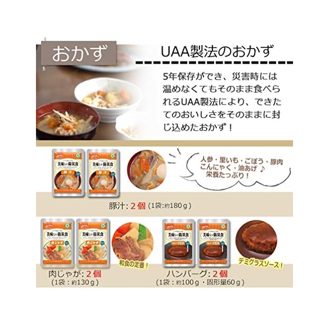 おかずはUAA製法により災害時には温めなくても食べられます。