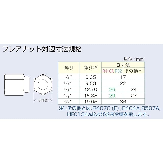 フレアナット(冷媒サイズ):1/4”・3/8”