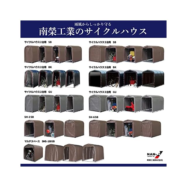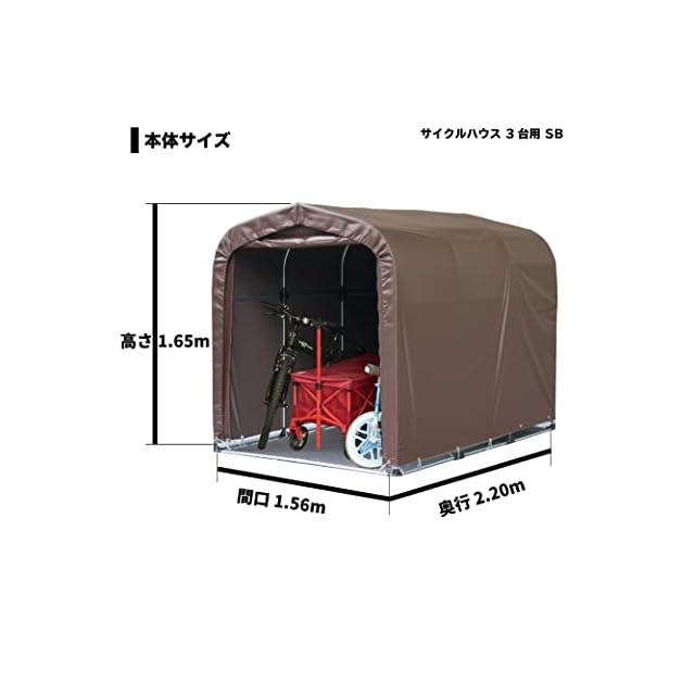 南榮工業(Nan-a Corporation) サイクルハウス 3台用SB 本体一式 間口 1.56m 奥行 2.2m 高さ 1.65m 自転車 電動自転車 アウトドア バイク バイク用品 園芸用品 テント 物置 耐水圧50,000mm 国産 日本産 | つむぎ屋