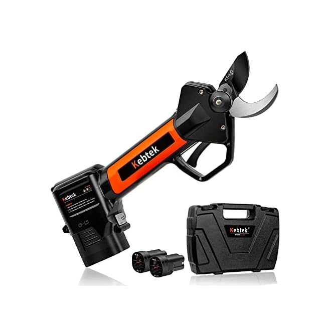 【1日の作業に対応可】:Kebtekの電気剪定鋏は大容量2500mAhのリチウム電池が2個付属しています。充電器はバッテリー2個を同時に充電できます。フル充電後、8〜10時間作動できます。1日の作業に十分対応できます。付属のキャリーケースに収納したり、別売りのウェストバッグに入れたりすると、外出作業も楽になります。
