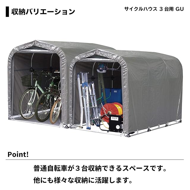 南榮工業(Nan-a Corporation) サイクルハウス 3台用GU 本体一式 グレー 自転車 バイク 農機具 倉庫 収納庫