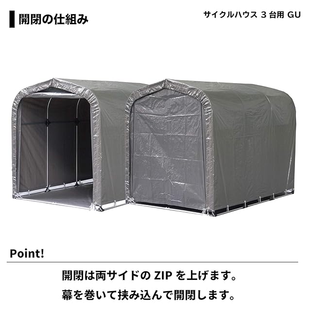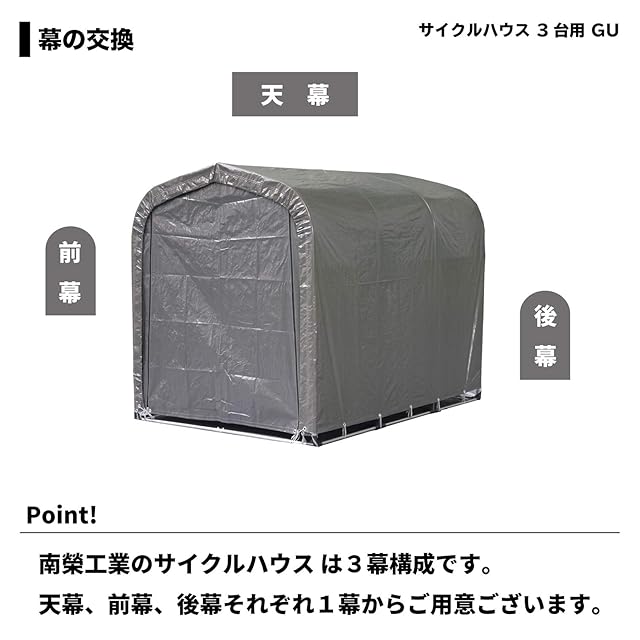 商品名:南榮工業(Nan-a Corporation) サイクルハウス 3台用GU 本体一式 グレー 自転車 バイク 農機具 倉庫 収納庫