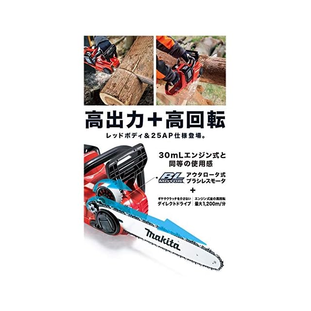 商品名:マキタ 充電式チェンソー ガイドバー350mm 赤 18V+18V バッテリ充電器別売 MUC353DZFR