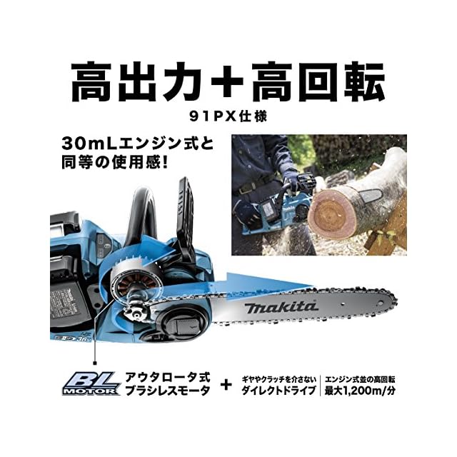 商品名:マキタ 充電式チェンソー ガイドバー300mm 青 18V 6Ahバッテリ2本・充電器付 MUC303DPG2