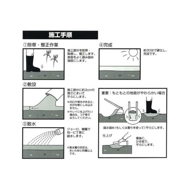 作業方法 : 砂を5cm程の厚みで敷き、水をかける