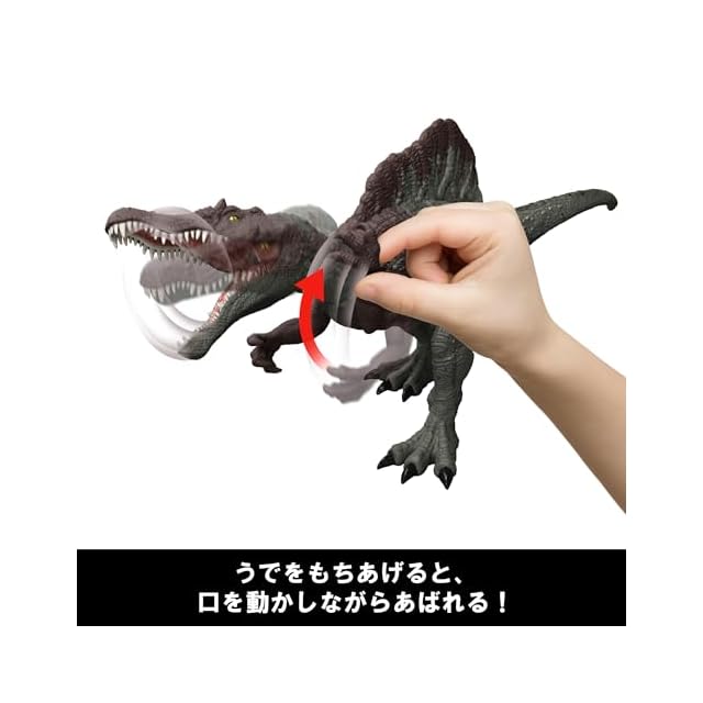 【内容】映画『ジュラシック・ワールド/復活の大地』に登場するスピノサウルスが革新的なギミックでリアルに再現!背中のボタンを押すと、左右に噛みつきながら尻尾を振る2種類の攻撃!ボタンを連打するとスピードがアップして激しく暴れる ダイナミックなアクションも!大人気フィギュアと連動する無料アプリ「ジュラシック・ワールド・プレイ」に対応しています。 Universal City Studios LLC and Amblin Entertainment, Inc. All Rights Reserved.