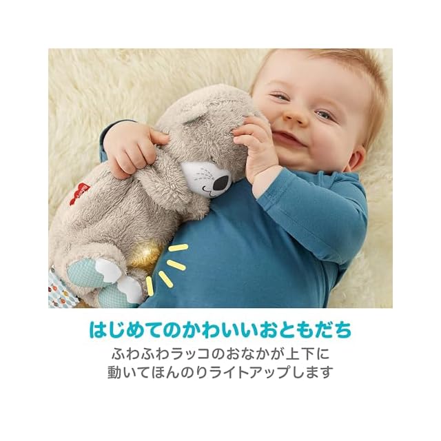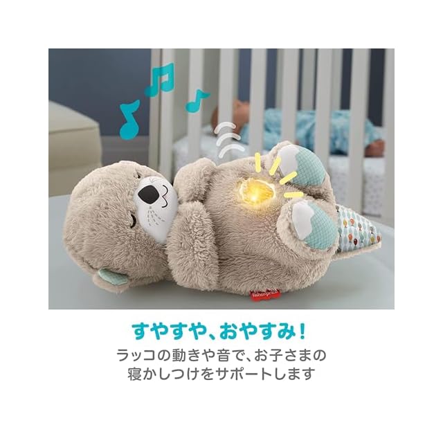 寝かしつけをサポートするかわいいおともだち。赤ちゃんが落ち着く音を流し、ラッコのおなかが上下に動くのでママパパのおなかの上で寝ているかのような安心感を与えます。