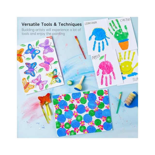 【様々な利用シーン】指を使ったお絵かきはもちろん、筆やスポンジを使用して、紙、机、壁、布などに描けます。ホビーとして手形、足形アートが作れますし、子供がお絵描きを楽しめ、五感を養うのにも適しています。子供の手形、足形を記念にとる際に使用したら、子どもの成長の記録にもなれます。お絵かきが大好きな、男の子や女の子へのプレゼントにもおすすめです。