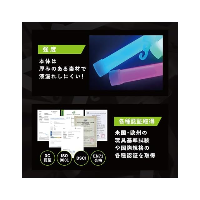✅【液漏れしにくい安心安全設計/国際規格認証を取得した工場で生産】お客様の安心安全を第一に考えた、液漏れしにくい商品です。ペンライト外側の管壁を厚く設計しており、液漏れの心配なくご使用いただけます。また、ISO9001(品質マネジメントシステム規格)、EN71(玩具の安全性に関する規格)の国際規格認証を取得した工場で生産しています。