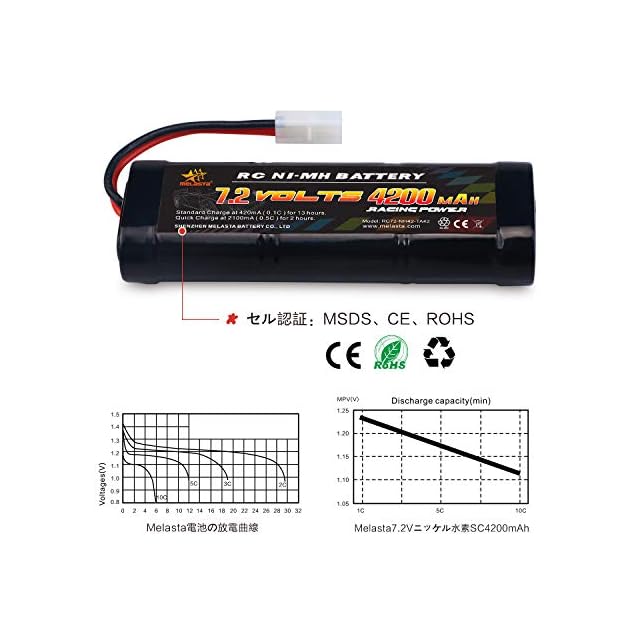 Melasta 7.2V 4200mAh ニッケル水素 バッテリー Tamiya タミヤ互換放電コネクター NI-MH 大容量 ラジコン バッテリー RCカー/レーシングカー/多種類RCモデル互換用 【CE ROHS認証済み】 | つむぎ屋
