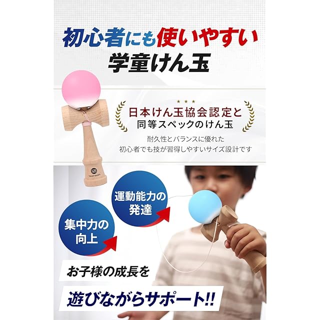 【初心者にも使いやすい学童けん玉】✅耐久性とバランスに優れ、初心者でも技が習得しやすいサイズの設計です。けん玉は子どもの運動能力の発達、集中力向上に役立つ玩具です。遊びながらお子様の成長をサポートします。