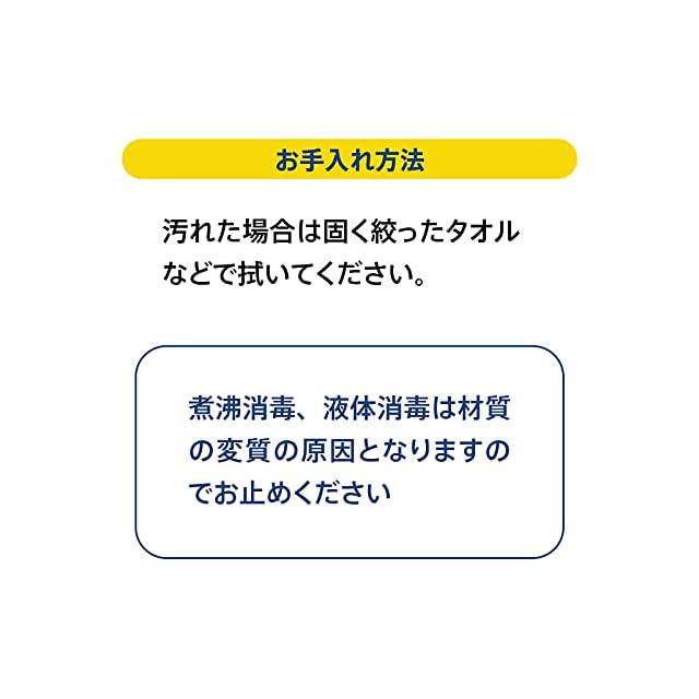 ※汚れた場合は固く絞ったタオルで拭き、よく乾燥させてください。 ※煮沸消毒、液体消毒は材質の変質の原因になりますので避けてください