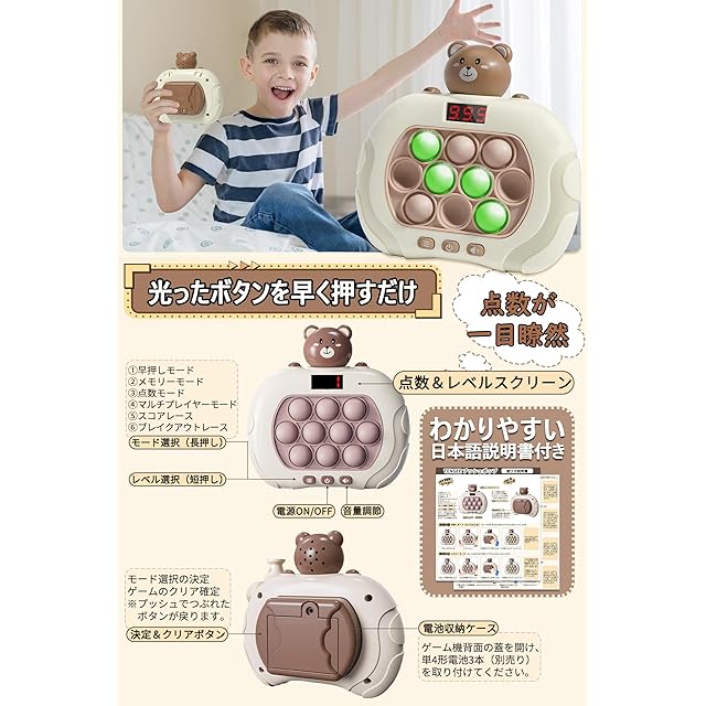 【大人気の知育玩具】もぐらたたきゲームおもちゃは、押しボタン式バブルゲームとエレクトロニックゲームを組み合わせています!電子ポップライトアップゲ一ムは楽しいクリックと動感のリズムで反応カ、手目協調能カ、記憶カ、論理思考能カを鍛えることができ。知育と頭脳ゲ一ムが好きな子供にぴったりです。