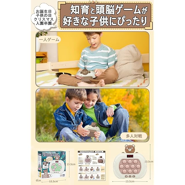 【ストレス解消グッズとして】単純なゲームですが、意外と面白い!子供でも大人でも遊べます。バブルは押しやすく、押すとすぐに凹み、バックカバーを押すと凸なります。親子で遊んだり、仕事や学校でのストレスを解消したり、子供が電子画面を見る時間を減らしたり、認知症を遅らせるために脳の反応を鍛えたり、さまざまな場面で活躍する。