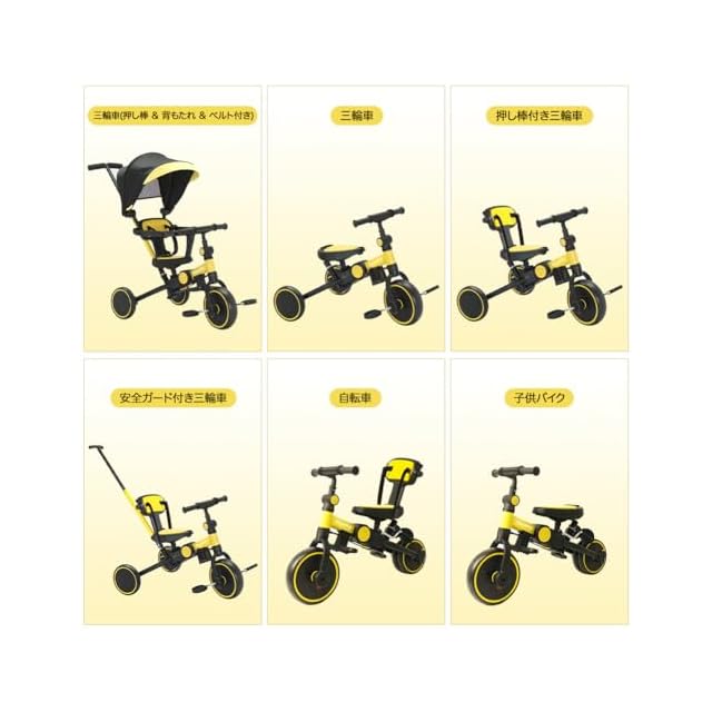 【7IN1多機能三輪車】適応年齡:1~6歲,本体素材:炭素鋼とEVA/重量:6.3kg/梱包サイズ:69×17×39cm耐荷重:25kg .※個体差やモニター環境により、色やサイズが若干異なる場合がございます。予めご了承の上ご注文くださいませ。子供用三輪車は6つのモードがあります。1. 三輪車(押し棒&背もたれ&ベルト付き) 2.押し棒付き三輪車 3.安全ガ一ド付き三輪車 4.自転車 5.子供バイク 6.三輪車 押し棒を外して通常の三輪車として、お使いいただけます 7.収納と展開できるステップ機能追加。コントロール力が身につけられ自転車に乗るための練習用最適です。子供バイクは足蹴り走行なので、乗っているうちに足腰が鍛えられ運動能力のアップが期待できます。