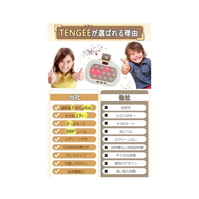 TENGEE プッシュポップ ゲーム 電動 【最新plus13キー スクリーン付】 知育玩具 男の子 女の子 誕生日プレゼント 6歳7歳8歳 小学生 おもちゃ 人気 早押し 6モード 999+レベル 日本語説明書付 ストレス解消 グッズ (ウサギ) | つむぎ屋