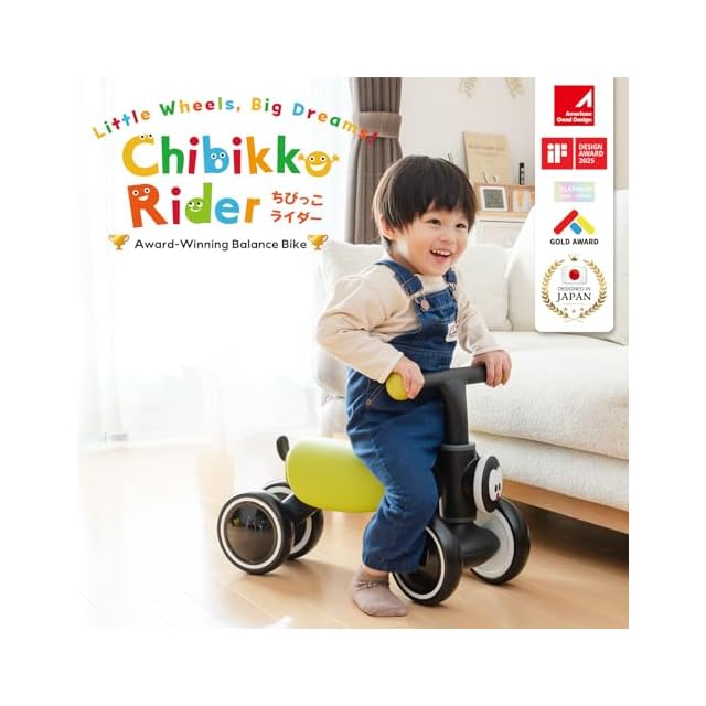 ✅【抜群の安定感で安心♪】「ちびっこライダー」は4輪構造で高い安定性を実現。三輪車よりもバランスを崩しにくく、安心して使用できます。タイヤはEVAフォーム製で無臭・無毒、床を傷つけない仕様のため、室内でも安心して遊べます。また、専用バランスボード(別売り)を使えばロッキングアニマルとしても楽しめ、15度の傾斜でバランス感覚を養う遊びが可能です。