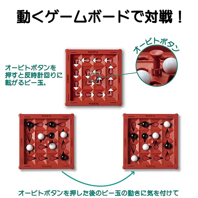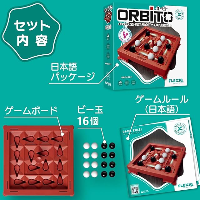 パッケージサイズ : 約 幅 25cm x 高 25cm x 奥行 6.2cm / ボードサイズ : 約 横 17.6cm x 縦 17.6cm x 高 3.5cm / ビー玉サイズ : 約 直径 1.9cm / 正規品 FlexiQ Orbitoの日本語版 / 日本語遊び方説明書付き / プレイヤー数 : 2人 / 対象年齢 : 7歳以上 / ゲーム時間 : 約 10分
