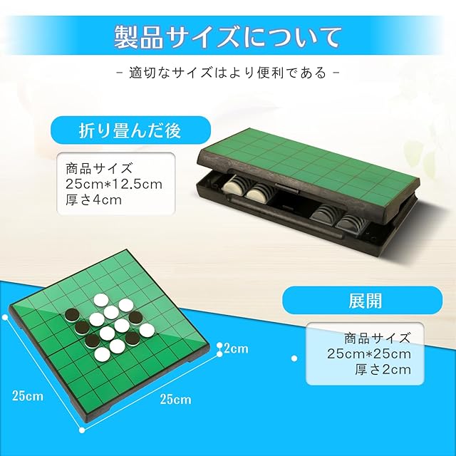 【便利で使いやすい】:リバーシ盤は折り畳み式であり、旅行や友人の家へのちょっとしたお出かけ、天気の良い日の公園やピクニックにも簡単に持ち運ぶことができ、非常に便利です。