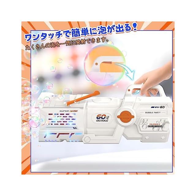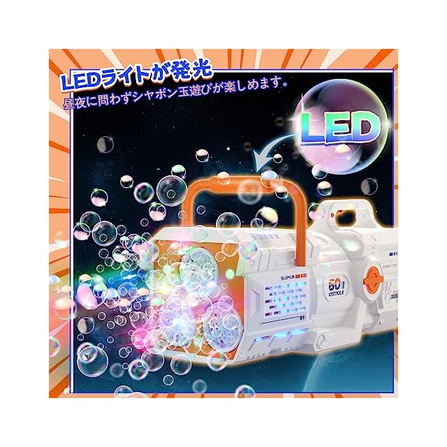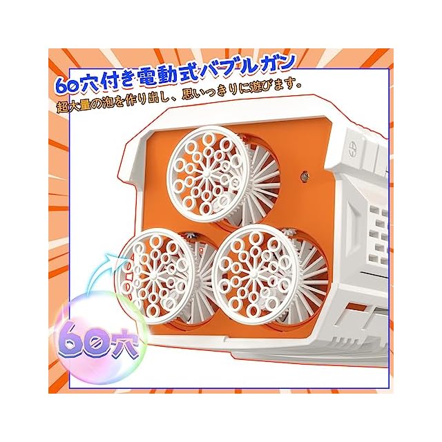 シャボン玉 60泡穴 バブルガン 電動式 Skirfy 2in1遊び方 バブルバズーカ 超大量泡 LED 光る ボトル2瓶 液漏れ防止 バブルマシン シャボン玉製造機 USB充電式 子供向け 大人向け バズーカ砲形 雰囲気作り 外遊び ピクニック 結婚式 誕生日 プレゼント 女の子 男の子 ギフト(オレンジ)bubble orange | つむぎ屋