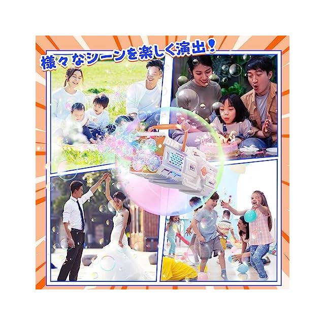 【多様な場所で大活躍!】屋内外のあらゆる場所で楽しい泡遊びを楽しむことができます。家族や友人と一緒に、公園や海岸などの野外でも泡遊びができます。また、誕生日パーティーやイベントなどでも大活躍します。バブルガンを使って、子供たちとも大人とも思いきり遊び、楽しい時間を過ごすことができます。