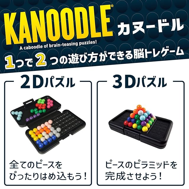 世界100カ国以上で愛されるラーニングリソーシズ (Learning Resources) 社のカヌードル(Kanoodle)は、1つで2つの遊び方(2D・3D)ができる脳トレゲームです。