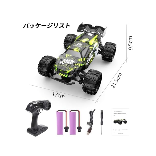 DEERC ラジコンカー 子供向け ラジコン オフロード リモコンカー 電動RCカー 車 おもちゃ 1/20 2.4GHz 独立懸架システム 操作時間40分 子供 小学生 中学生 男の子 誕生日 プレゼント 贈り物 こどもの日 日本語取扱説明書 日本国内認証済み S767 グリーン | つむぎ屋