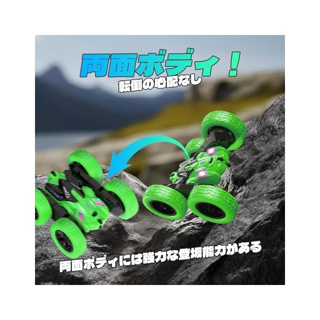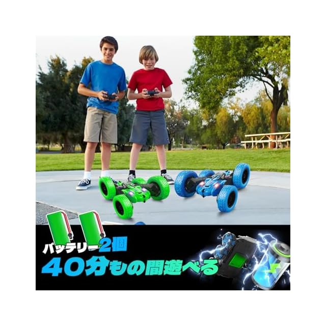 【2025年昇級版】binoa ラジコンカー 子供向け スタントカー 360度両面ロールラジコン オフロード車 2.4Ghz高感度ワイヤレスリモコン ドリフトオフロード LEDライト付き 大容量バッテリー rc car 日本語取扱説明書 | つむぎ屋