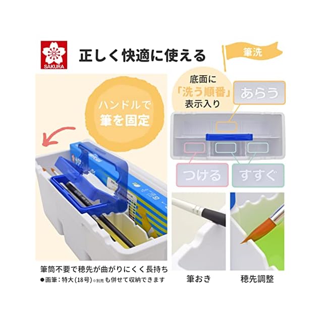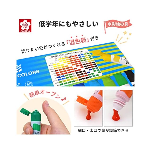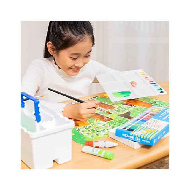 【セット内容】絵の具12色(12ml)・パレット(16色用)・画筆2本(12号/6号)・筆ふき用スポンジ・筆洗(筆筒機能あり)