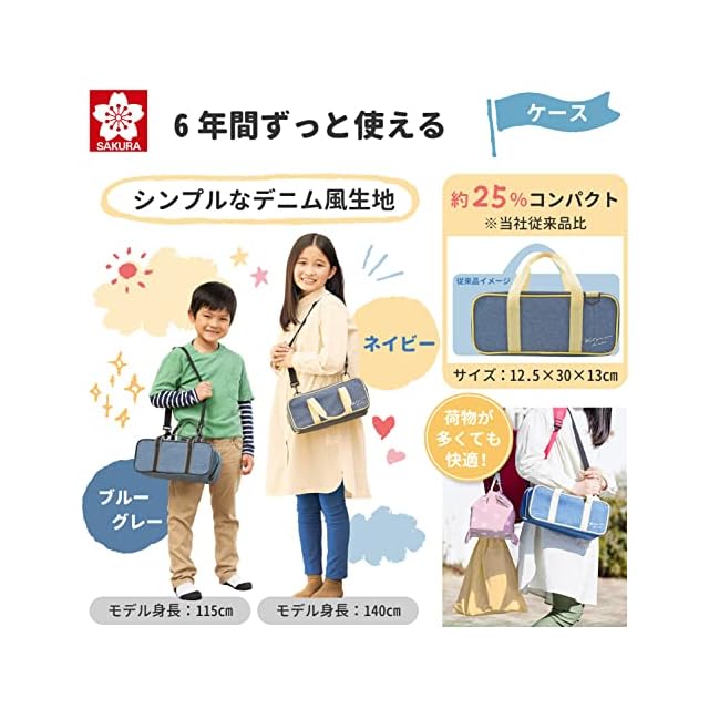 【特長2】当社従来品と比べ大きさを約25%カット。小さくて軽いので低学年でも持ち運びやすい。