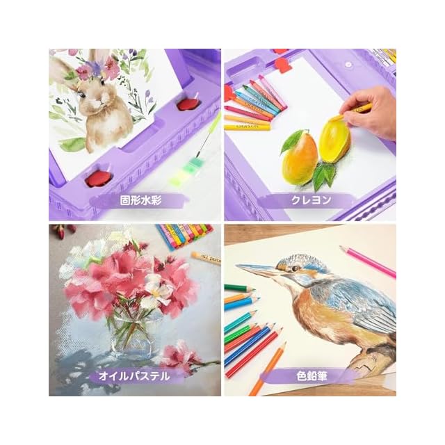 【【鮮やかな色がはっきり描けます】今まで市場では発色ない、折りやすい、定着性弱い素材に使用しているメーカーがたくさんあります。不良品のお絵かきセットは子供達かきの感興をそぐだけではなく、市場に良くない気風をなしていくかもしれません。ですから、品質の約束や企業の決まりにより、弊社が自ら率先してが改善し、率先垂範者として高品質の原材料にこだわり続けています。オイルパステル、クレヨン、色鉛筆を改良して、市場で従来品よりもっと着色しやすい素材の使用を主張しています。