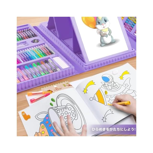 【プレゼントに最適】セット内容:A4塗り絵本×1冊 「可愛なシール付き」、40枚10色折り紙、子ども安全はさみ×1、オイルパステル×48、クレヨン×24、色鉛筆×24、固形水彩×18、水性マーカー(細)×24、水性マーカー(太)×12、画用紙×10などです。子供の発想力、集中力、クリエイティビティ、コミュニケーション、問題解決、空間認識、視覚的認識、形や大きさ、色、文字、数字、手と目の協調など様々な能力を伸ばします。心遣いのデザインを通じて、素晴らしい芸術作品を創造してきます。