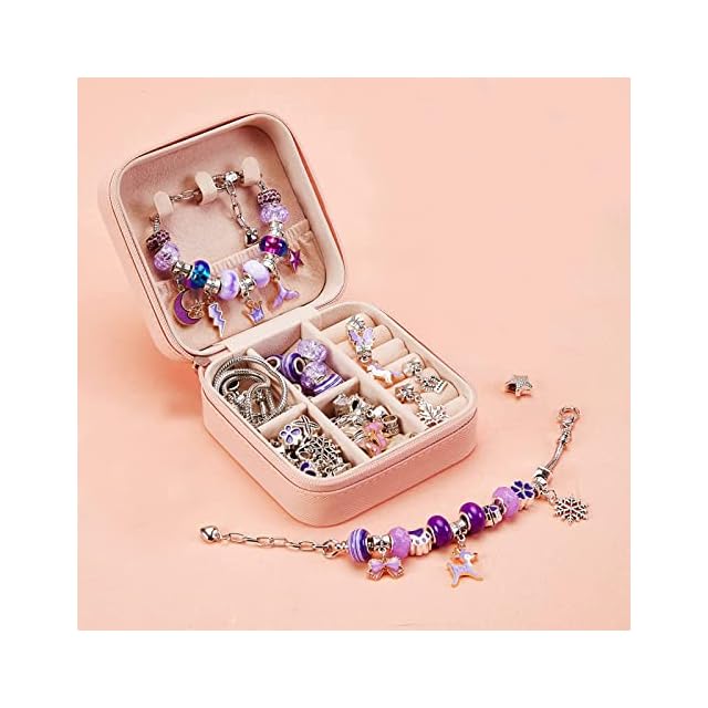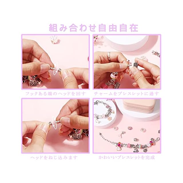 【可愛い収納ケース付き】ブレスレットをきれいに収納できる可愛いケースが付き、細かいチャームもしっかり個別に収納可能です。