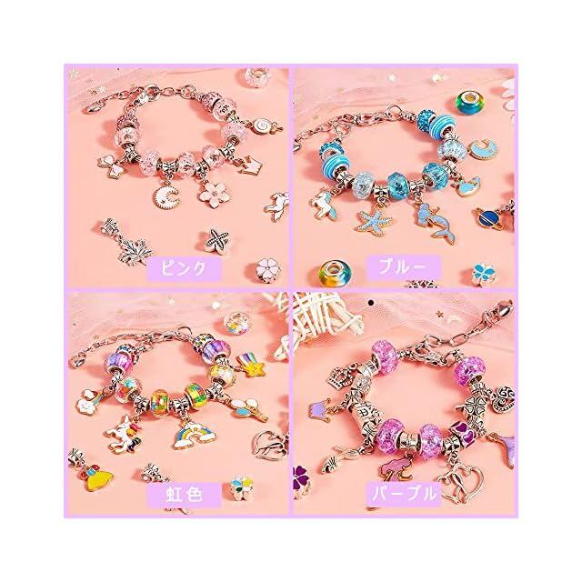 【セット内容】60個様々なかわいいチャームがセットになっている、また基本的なブレスレット3本、ネックレス紐3本が付属、女の子が喜ぶようなアクセサリーが簡単に作れるです!おしゃれを持ち始めた子どもに向けています。6歳以上