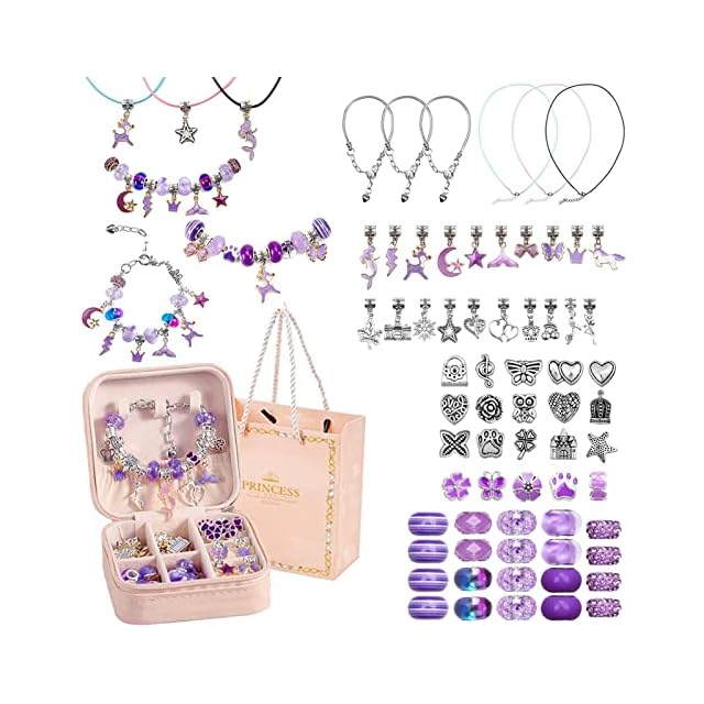 【セット内容】60個様々なかわいいチャームがセットになっている、また基本的なブレスレット3本、ネックレス紐3本が付属、女の子が喜ぶようなアクセサリーが簡単に作れるおもちゃです!おしゃれを持ち始めた子どもに向けています。6歳以上
